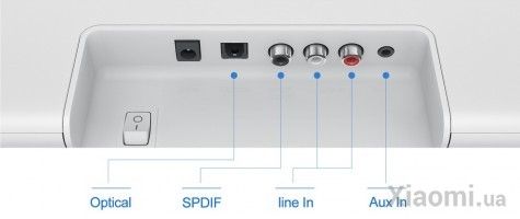 Саундбар оснащен несколькими разъемами (Line, Aux, SPDIF, Optical), посредством которых можно подключить практически любое звукопроводящее оборудование. Mi саундбар оснащен Bluetooth модулем для беспроводного соединения с различными девайсами.