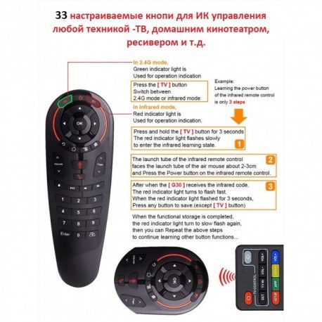 Пульт ДУ UNIVERSAL ANDROID G30S (Air Mouse + programmable 33 buttons + voice remote control)
