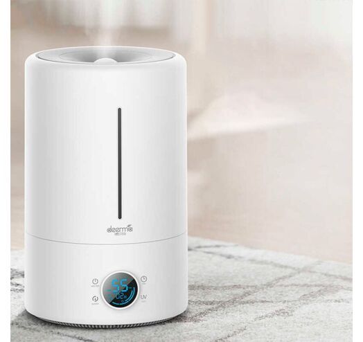 Увлажнитель Deerma DEM-F628S UV с производительностью 250 мл/час и вместимостью 5 л обеспечивает равномерное распределение водяной дымки и подходит для комнаты площадью 25-30 м². Кроме того, он оборудован УФ-лампой, которая стерилизует воду перед ее распылением в воздух.