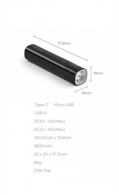 Портативный фонарик Solove X3 Portable Flashlight Power Bank 3000 mAh отлично подходит для использования его как фонарика или как Power Bank. Устройство находит идеальный баланс между функциональностью и производительностью.