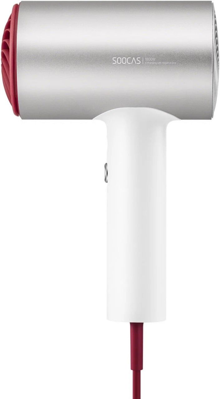 SOOCAS H5 - фен мощностью 1800 Вт, обладающий эргономичным дизайном. Корпус устройства выполнен из алюминиевого сплава, что позволяет удерживать температуру потока воздуха на безопасном для волос уровне. Направляющее сопло конической формы и большая крыльчатка обеспечивают мощный и объемный поток воздуха. Дополнительно устройство оснащено ионизатором, который снижает сечение кончиков волос и делает их послушными, мягкими и блестящими. Для удобного хранения и переноски фена, в комплект входит удобный велюровый чехол, чтобы высушить волосы всего за пару минут.