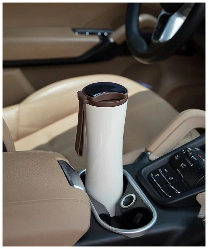 вакуумный, непроливайка, нескользящее дно, носик для питья, отверстие для питья в крышке, ремень для переноски, ручка на корпусе, с датчиком температуры, с ситечком, OLED-дисплей, Отверстие для питья, Термодатчик