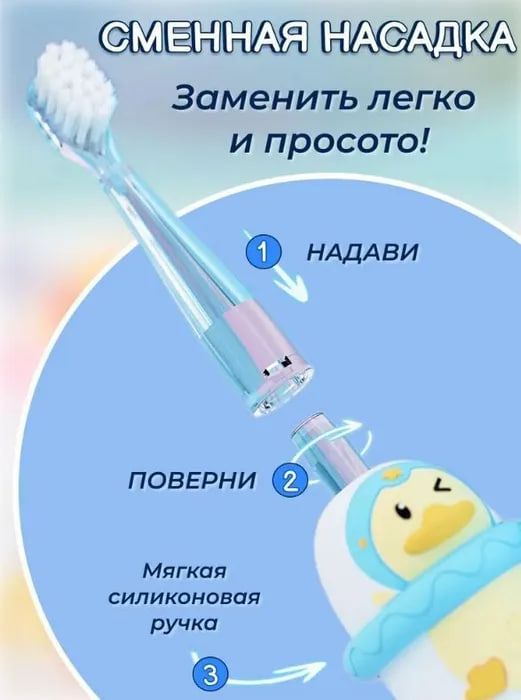 Xiaomi Bomidi Toothbrush KB01 Blue - детская электрическая зубная щётка от бренда Bomidi. Имеет симпатичный дизайн в виде уточки, к тому же она эргономичная. Ребенку легко будет удерживать щетку в маленьких руках. Щетинки насадки изготовлены из высококачественного запатентованного материала, а высокий стандарт защиты о IPX7 позволяет не только легко мыть изделие, но и выдерживать погружение под воду на глубину до 1 метра в течение 30 минут.