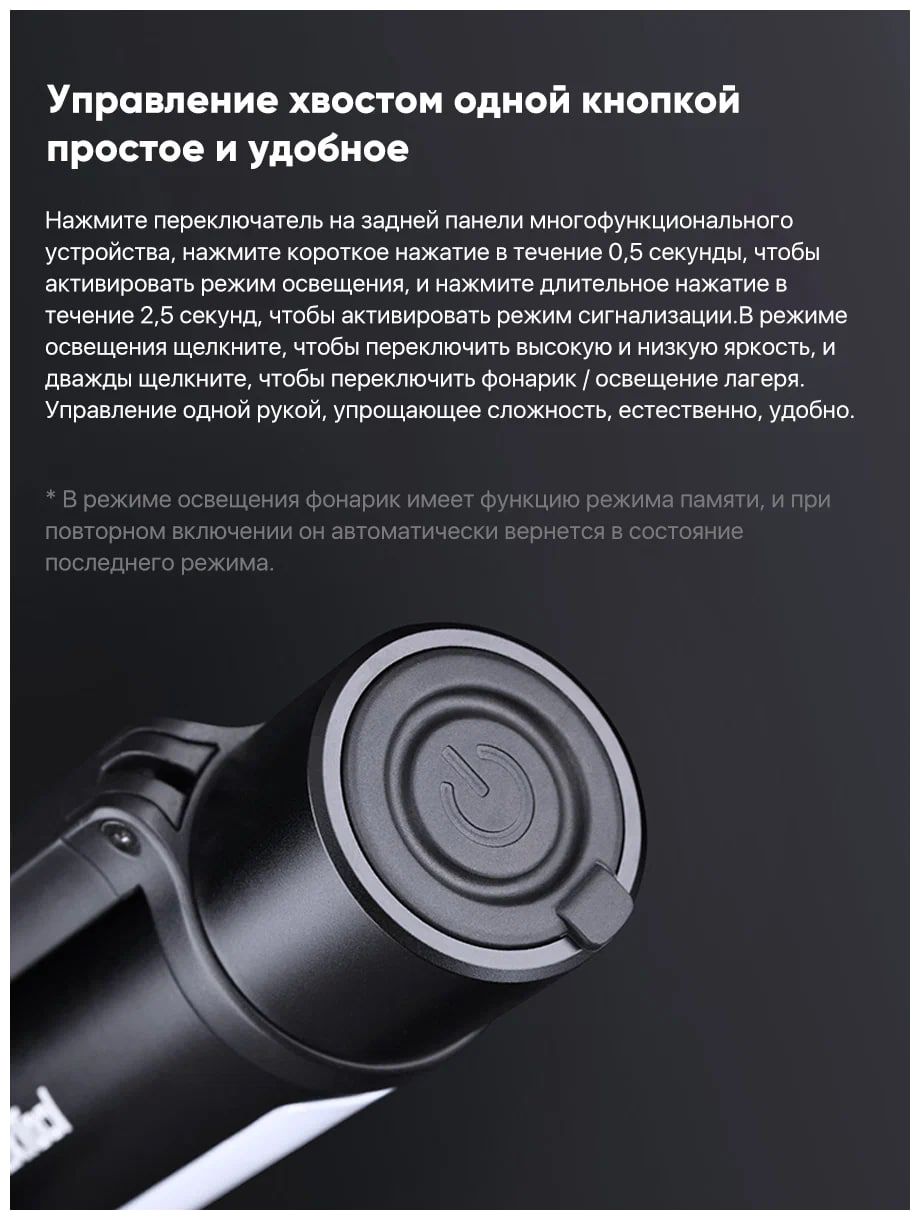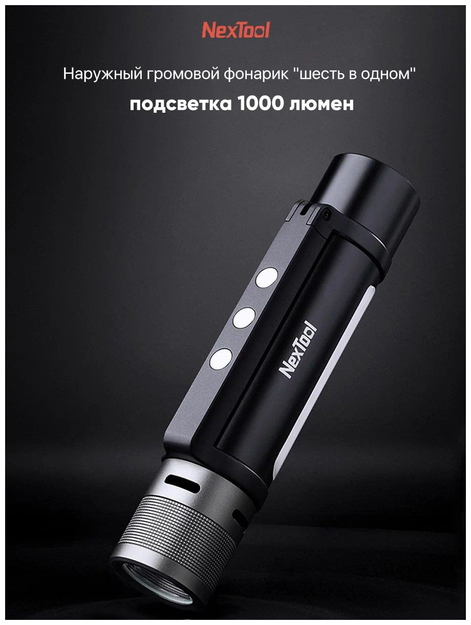 Дальность светового потока Xiaomi NexTool Natuo Outdoor 6-in-1 Thunder Flashlight Black Hortable может достигать 240 метров. Режимы освещения отвечают любым потребностям: яркий (1000 люменов), средний (180 люменов), нозкий (40 люменов), режим SOS.