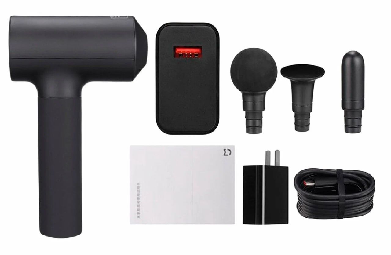 массажер, прямая насадка, плоская насадка, сферическая насадка, U-образная насадка, кабель зарядки, сумка для хранения