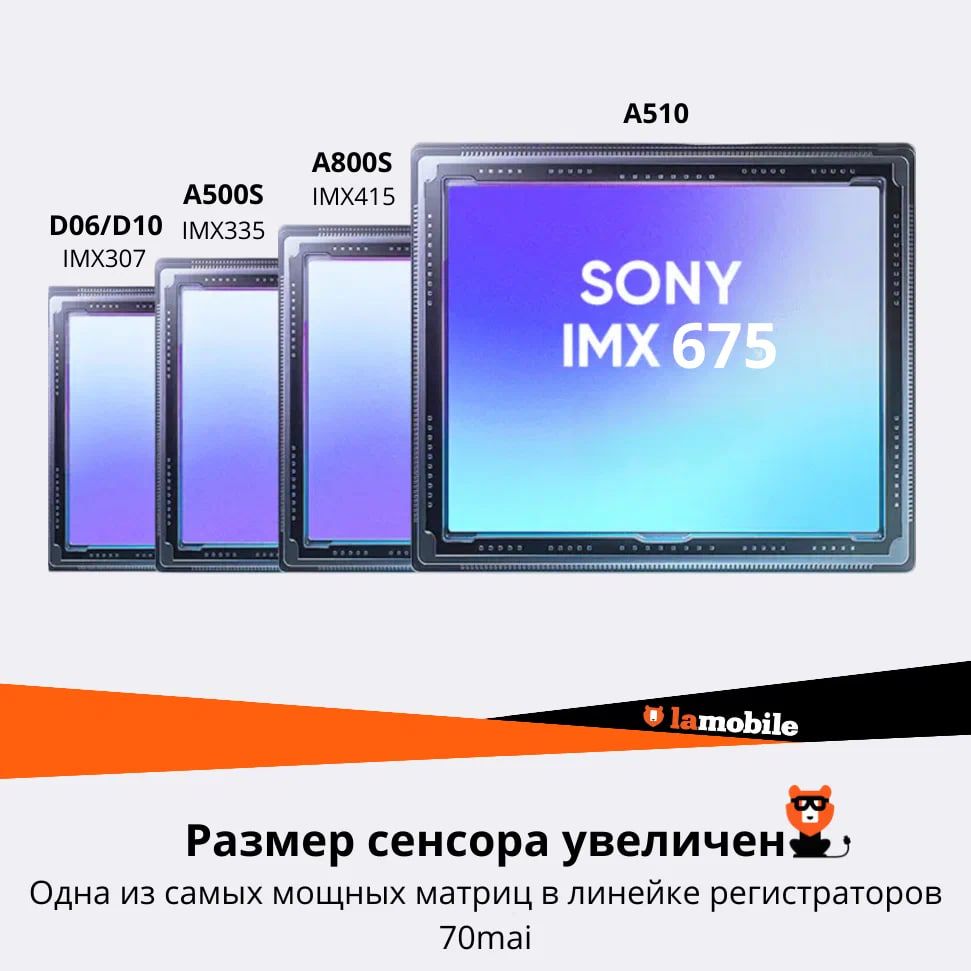70mai A510 – новинка в мире видеорегистраторов, апгрейд классической модели A500S. Гаджет оснащен мощным датчиком Sony IMX675. Он дает максимальную детализацию картинки без искажений. В дуэте с технологией Starvis 2, кадры получатся четкими - не зернистыми и не размазанными, независимо от освещения. Разрешение съемки 2592 х 1944р, угол обзора 140° - в кадре все полосы движения.